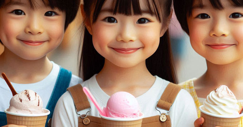 - アイスクリームのフレーバーは、バニラ、チョコレート、抹茶、ストロベリー、コーヒー、クリームチーズ&ブルーベリーなど多様である。